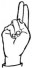 На ћирилици написано МИЛУТИН ПЕЈЧИЋ састоји се из 13 слова [?]. Исписано ћириличном једноручном азбуком за глувонеме: